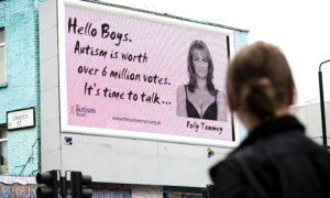 Polly Tommey was finding it difficult to attract attention to her campaign for increased awareness of autism, so she took her top off and posed, Wonderbra-style, for billboard posters beneath the words “Hello Boys”. The boys she has in mind are the three main party leaders, and the appearance of dozens of these images around London last week prompted a surprisingly swift response from representatives of each party.