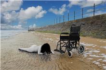 The photo shoot depicts a naked Franklin lying on the sand on a wintry beach, next to her empty wheelchair.