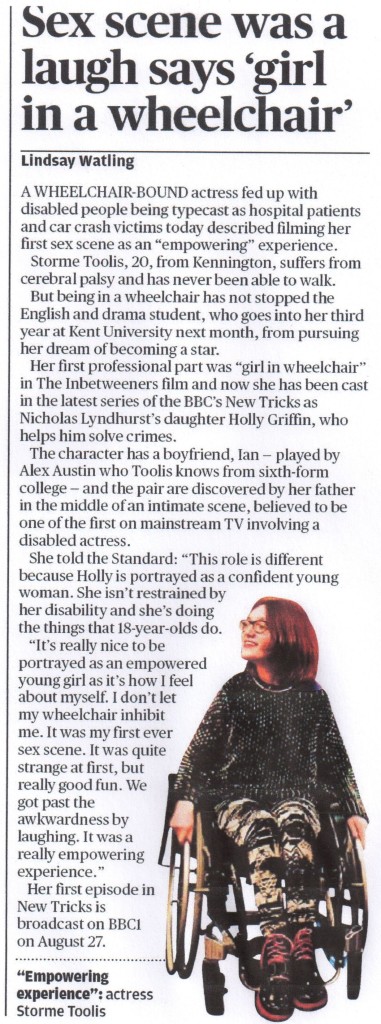 She comes across as an intelligent, quirky young desirIble lady the wheel chair is irrelevant as her character shines through. I know normals think the diabled don’t have libido or sex. Personally I have loads of the first and a lack of the second!