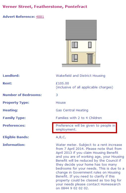 Some of these could be private landlords who have been caught out before by bad benefit tenants who have done moonlight flits and/or caused a lot of damage to the property and they don’t want to risk it again. Housing associations usually do give preference to people working.