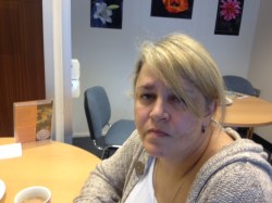 Deborah Ruby, who has had her ESA stopped, despite her multiple chronic health issues. Deborah Ruby struggled into this London Trussell Trust food bank with her voucher. She’s a 51-year-old lady with multiple health issues. These include, but are not limited to, arthritis in the lower spine, hips, neck and knees, depression, severe Irritable Bowel Syndrome and congenital heart problems. She has been separated from her husband for 12 years and has four children – the youngest of whom is still at school.