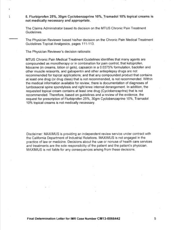 So back to the original point of this post, readers. This morning I found, on DPAC’s blog, a letter from Maximus about a US employee in which Maximus had decided that her medication was not medically necessary.