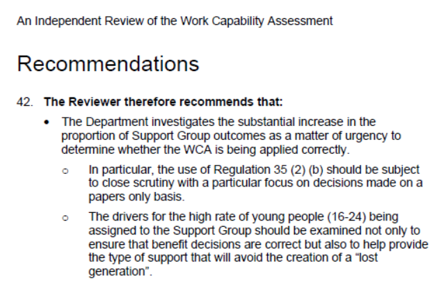 Recommendations made by Paul Litchfield in the latest review into the Work Capability Assessment