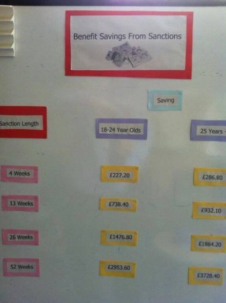 This was taken in a Jobcentre, therefore exposing that there certainly are targets for benefit sanctions, something which the government has always denied. Apparently the Jobcentre where it was taken isn’t being named at this point, presumably to protect the whistleblower, but the photo has already been passed on to a parliamentary select committee. Let’s hope the committee acts on this.