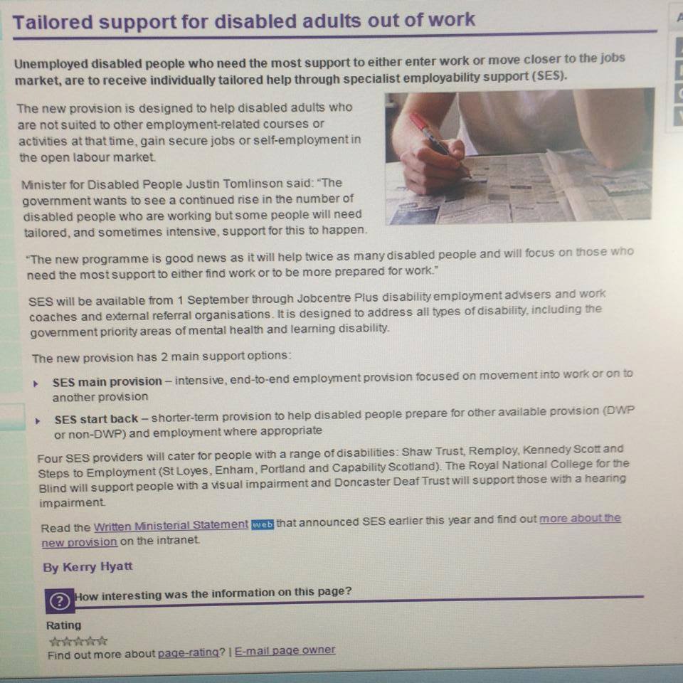 Updated 2pm: Many thanks to reader Liane Gomersall who sent in a page of information about how Remploy will run SES programmes.