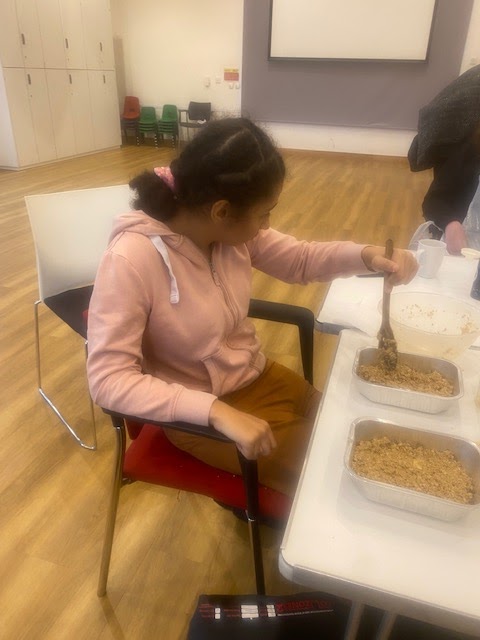we made flapjacks at work ewheels today is a group of young people from 18 to 30 years old all with cerebral palsy I have been going there since I was 16 years old I’m now about to be 23 years old and love going there to see my friends I will will love to share with you what we get up today I am sharing the crap jack’s which we made using apricot and great apple today at social Club I hope great the Apple and added the chopped up apricots to the mixture and stirred it with Sam wooden spoon thank you wacky bill for the baking activity today we all grow up together from other even sharing the same care provider and having Christmas parties together as we grew up and that’s how wacky wheels with formed in St Albans Hertfordshire England