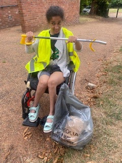 This summer I went with daylight club and a few members of passport to leisure to do do some community work litter picking and clearing up the streets of the community around trestle theatre and in the housing estates that are close to the theatre I went out out-of-hours in a hi-vis jacket and collected rubbish with my group and loaded it up into bags 4 a charity to take away and dispose of it, here is a picture of me in my hi-vis after coming back from litter picking