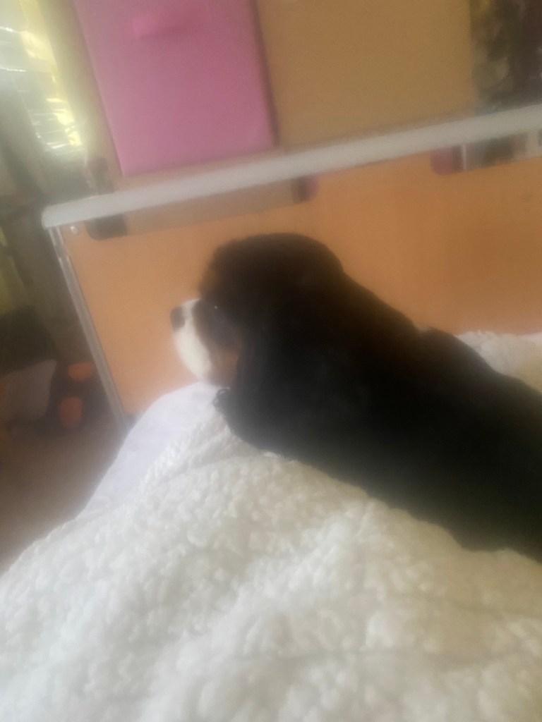Charlie holiday in and chilling on my bed in 2023 summer. Time call Louie is Grandma King Charles spaniel who is holidaying at my house at the moment. Iād like to think of my bedroom as his hotel room last night mode that I love him. Love you, Charlie š«¶š¼