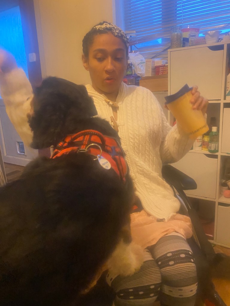 picture of me and my grandma’s dog today, when Vanessa visit me at my house