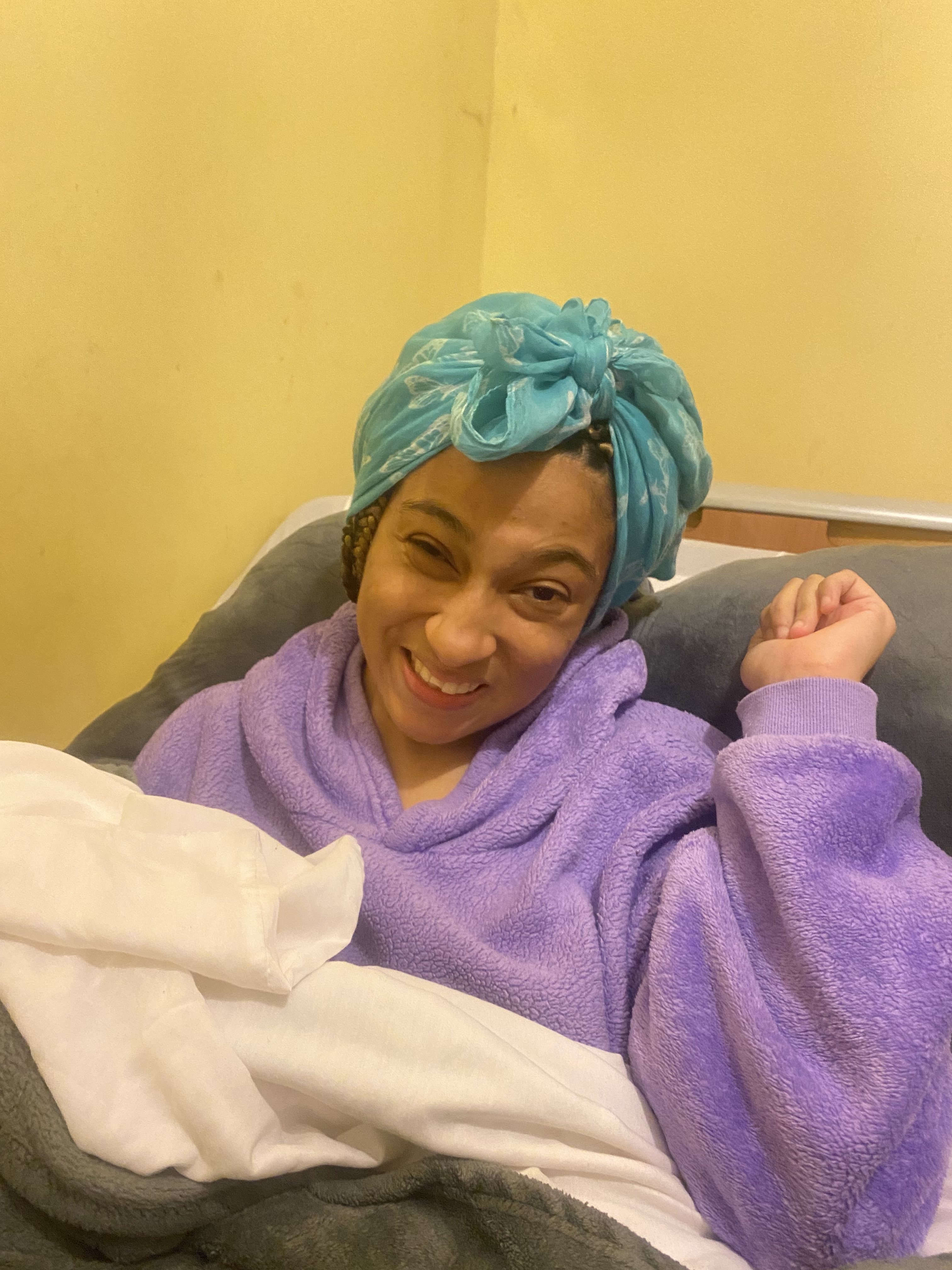selfie of the day, featuring my new fashion accessory for when I am in bed at night to keep my hair extensions, nice and neat that I had put in today at the hairdressers