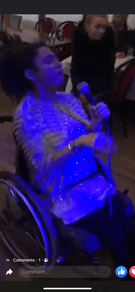 hi photo of me five years ago today singing at my care agencies Christmas karaoke party. I loved it and can’t wait until they bring these parties back as Wednesbury said lockdown. Obviously we had to stop at a party is managed to get them all set up again since then🌲🌲😘🌙 what a great night/afternoon eight words, memories, forever