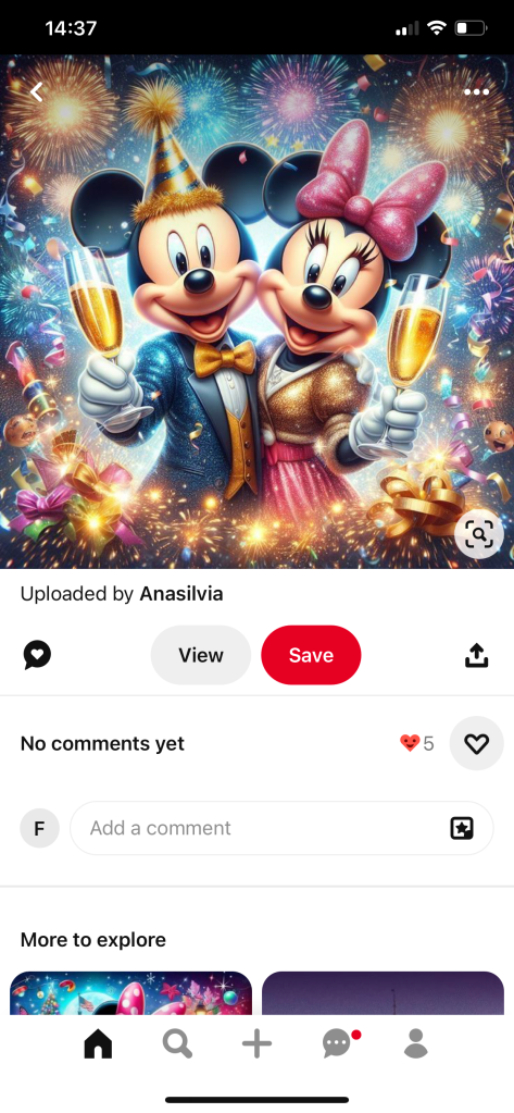 favourite painting of the day to illustrate the lead up to the New Year as it is Mickey and Minnie Mouse in party hats with fireworks before and the role on 2024 let it be a successful year for everyone in this
