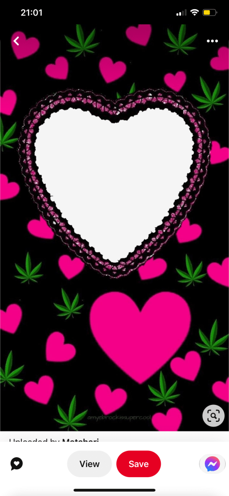 painting of the day with a heart design and leaf design on it. I love these colours because I like the pink and green as a combination of a compliment each other well