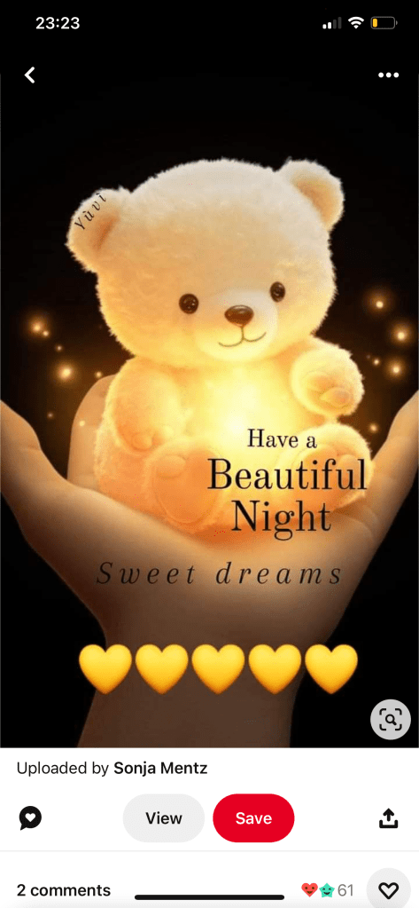 this one is for the teddy bear lover, good night, saying with teddy bear illustration