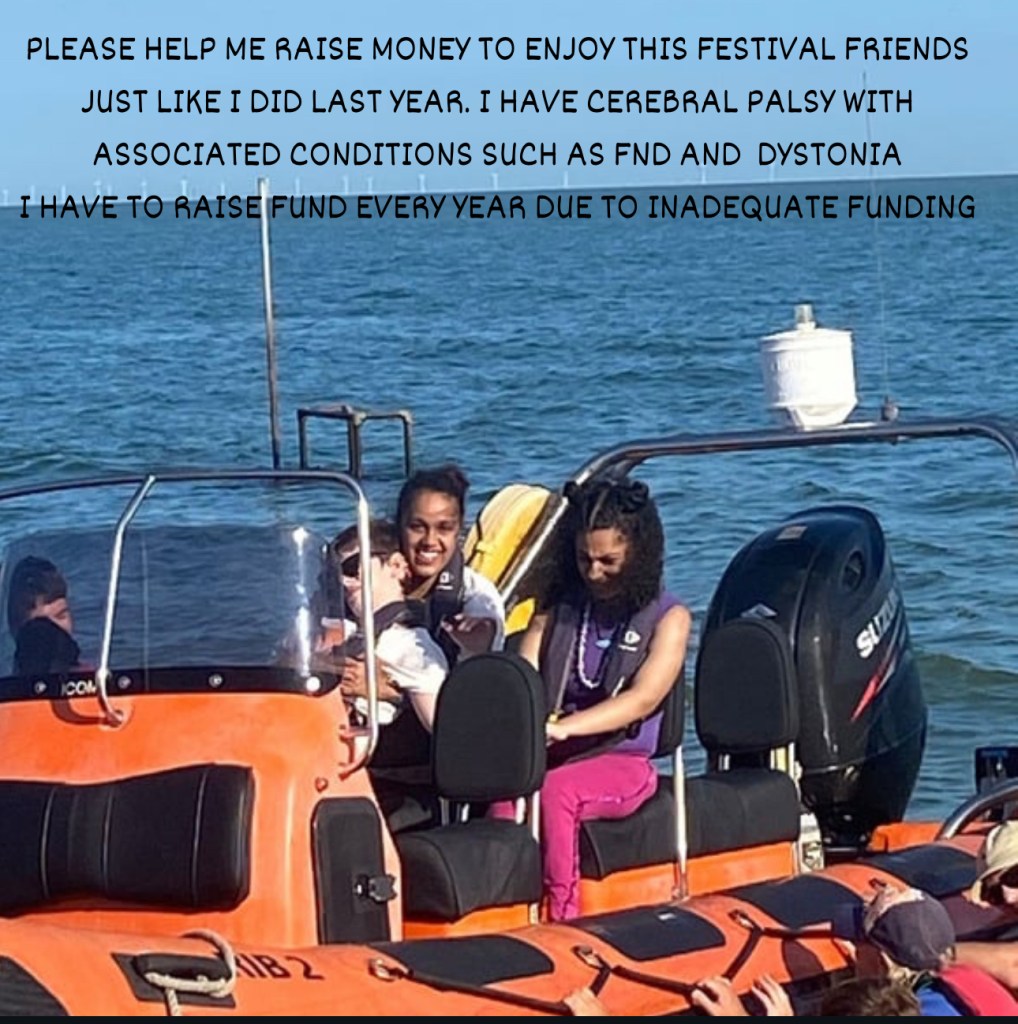 this is me on 2023 respite to enable me to access. Please try this respite. I need to run Grace so please donate if you can do an eyeball respond to this amazing speed boat trip at his specialist festival that not only allowed my caregivers terabyte allowed me to have a break with some of my friend with the support needed to support me with my disability is #ThisIsMeAndMyChronicallyIll suit please donate. If you possibly can dig deep into pockets with the evening, please donate to the Ring Road.