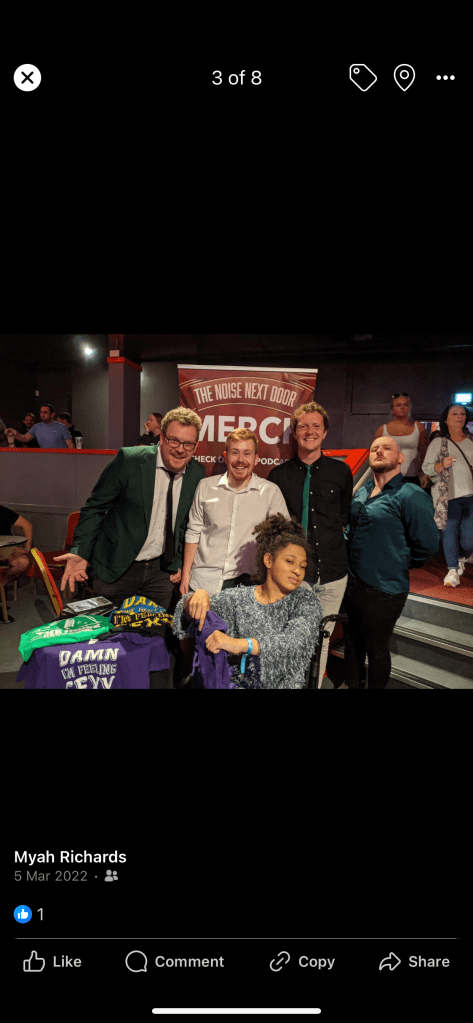 memory from 2021 for me at Butlins photograph with the comedy app that we saw and with a T-shirt from the merchandise collection#WestBank, #Butlins #CerebralPalsy #BitchButICallMyMumAndMe #Record2021
