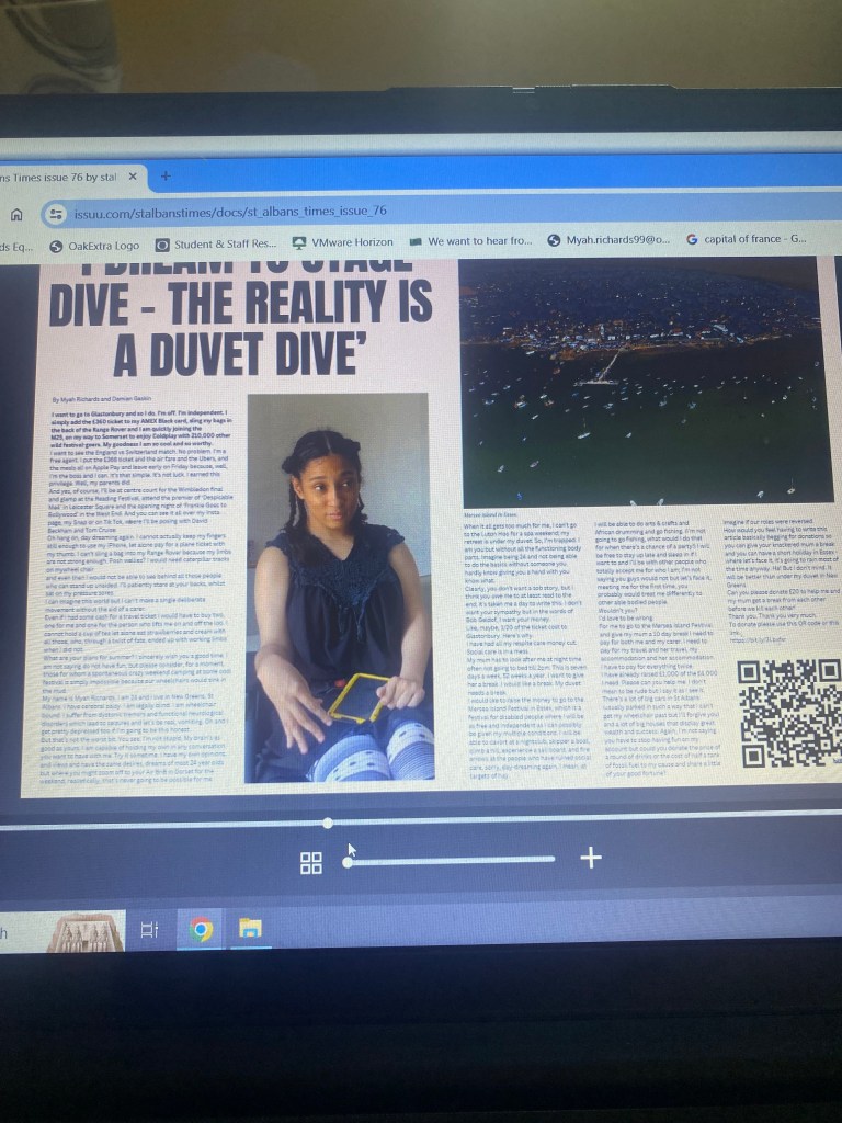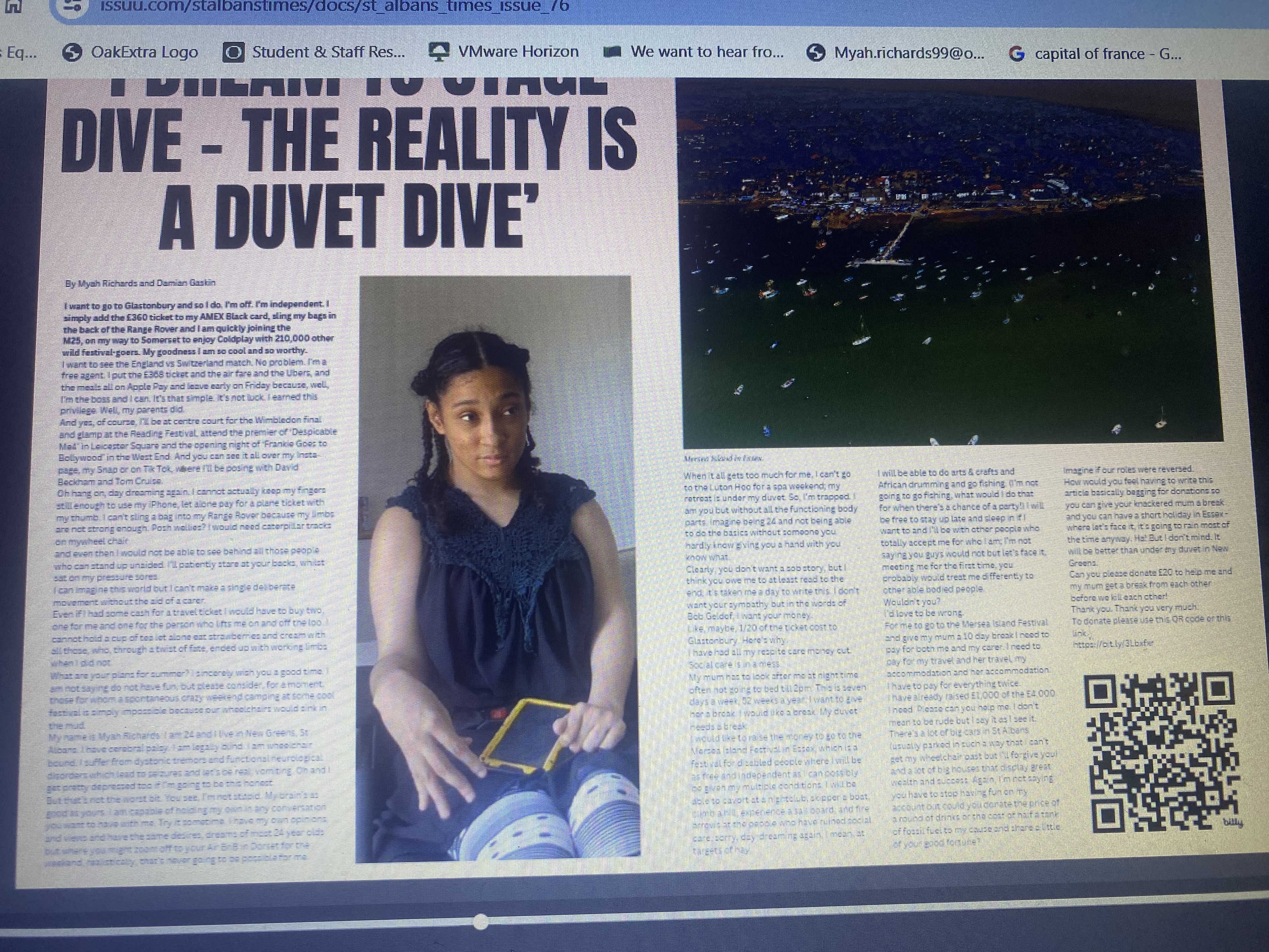 any news article about me? My fundraising and my story has been released by 10 times if you want to read more about it then go to the St Albans times website.