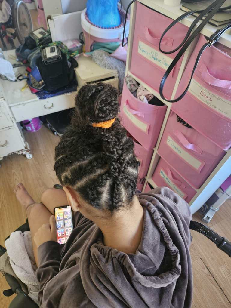 My hairstyle from the back that my PA did for me. How intricate does this look she is definitely talented. This is what the bonuses of having your own staff came because you can choose the talents that they have in order to work with and for you. That’s when you are receiving services/PAs at agency rather than just a platform like myself we can’t choose what talent they have And choose who could be best to meet your needs you just have to hope and pray a lot of the time with agency which is also known as domiciliary care rather than complex care and support.I certainly believe that getting Care from a platform rather than a Home care and support agency by employing my PAs has meant that I can access more of life as a young woman with complex care and support needs raising awareness for PAs where I can and the importance of them because I hear people going on about agencies in the Home Care/support workers for them, but I never hear about the people that employ staff teams of their own and how hard it is to find staff that want to work as a disability personal assistance. And this can be a postcode lottery and what council you fall within. It depends on whether they allow you to employ your own PA’s or they believe you should stay with an agency hence force you to do so against your will, like they did with me for 5years.