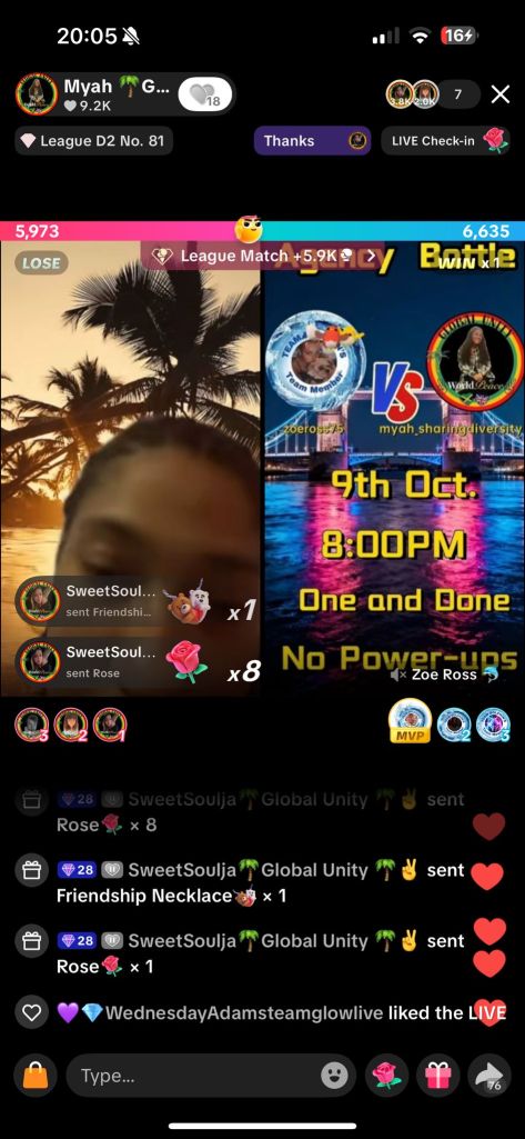 one of my fundraising jobs is agency battles with a TikTok agency. Here is me doing one of those agency battles a few weeks ago where we are supported by our gifted and supporters and whatever we earn from that little competition of a battle we get to spend on what we need to spend it on in my case this is client contributions and other things such as my activity groups, et cetera or my rest bike care if you would like to join an agency on TikTok we are an agency to and a team so please comment the word join agent agency in the comments to join and I will post instructions on how you do so in the reply comment to you after you have commented join agency