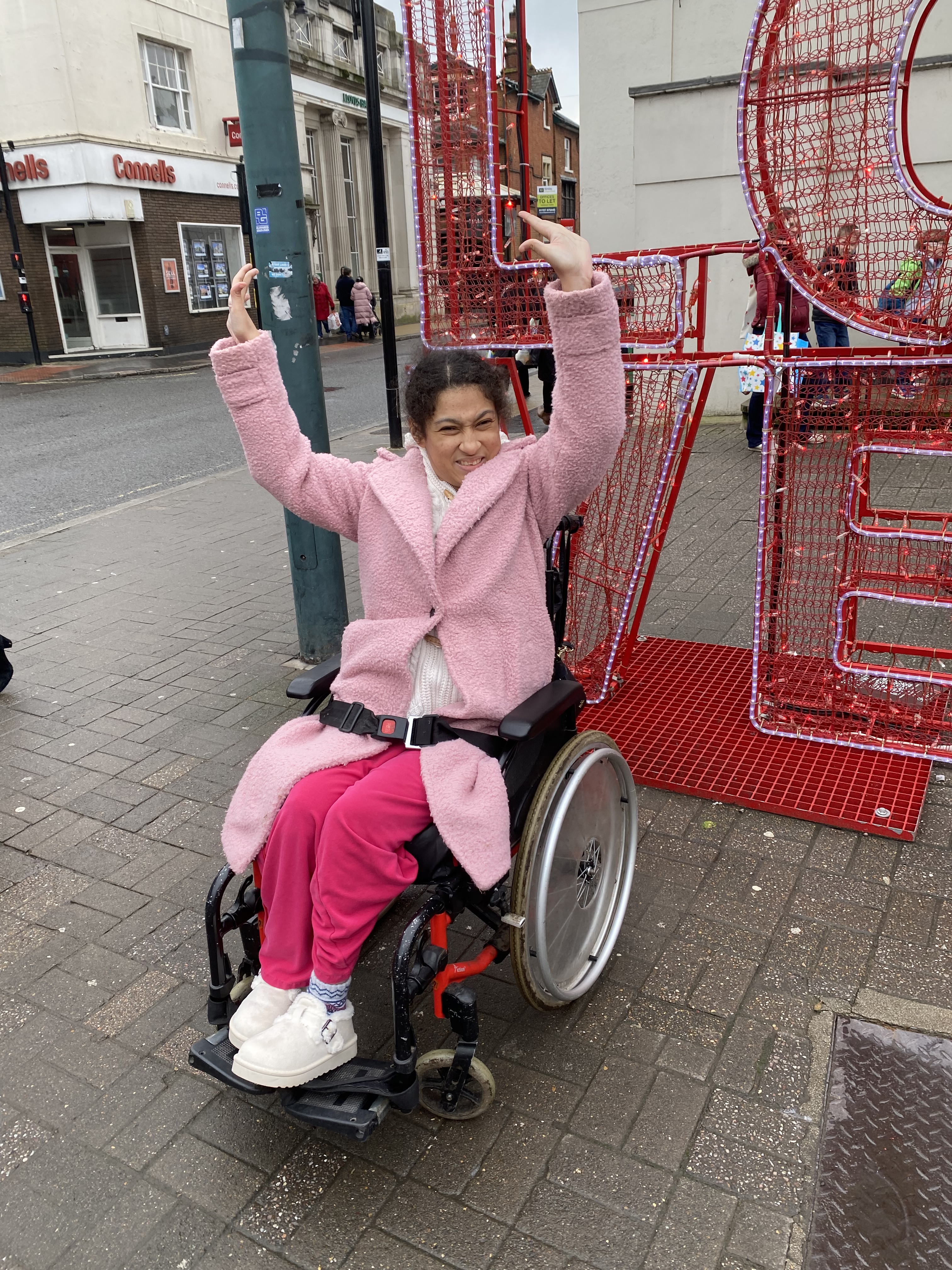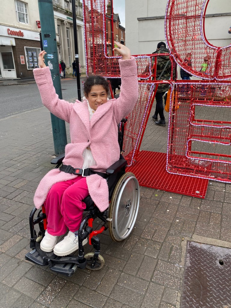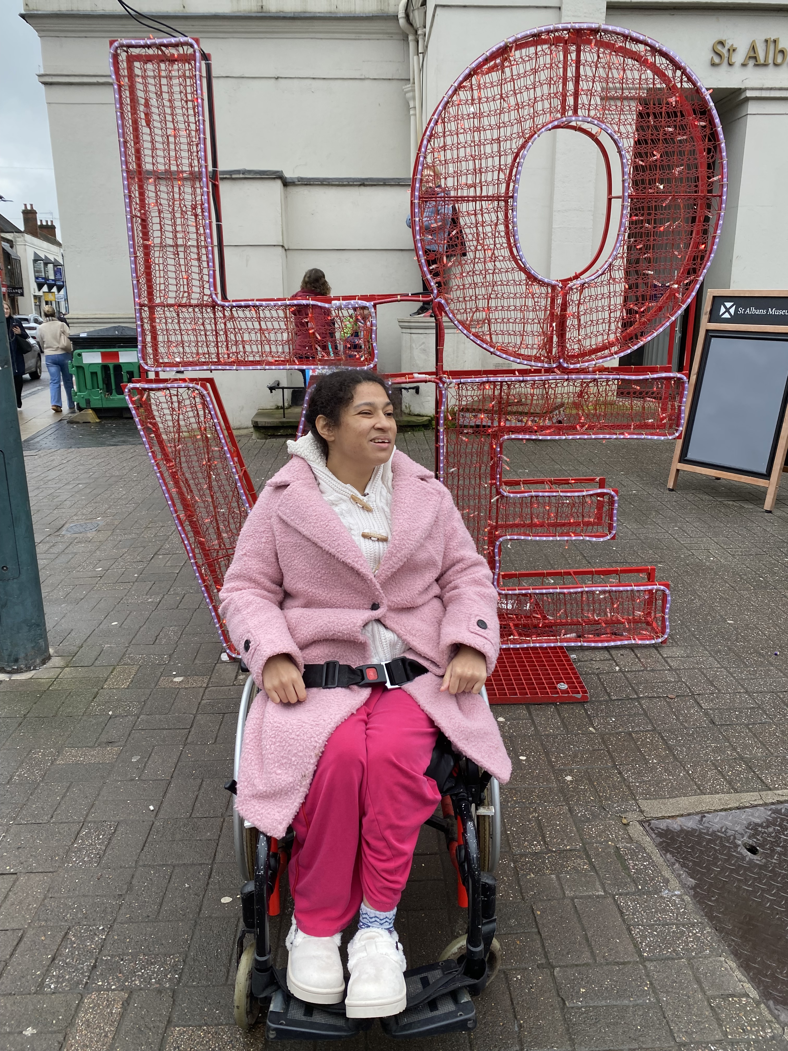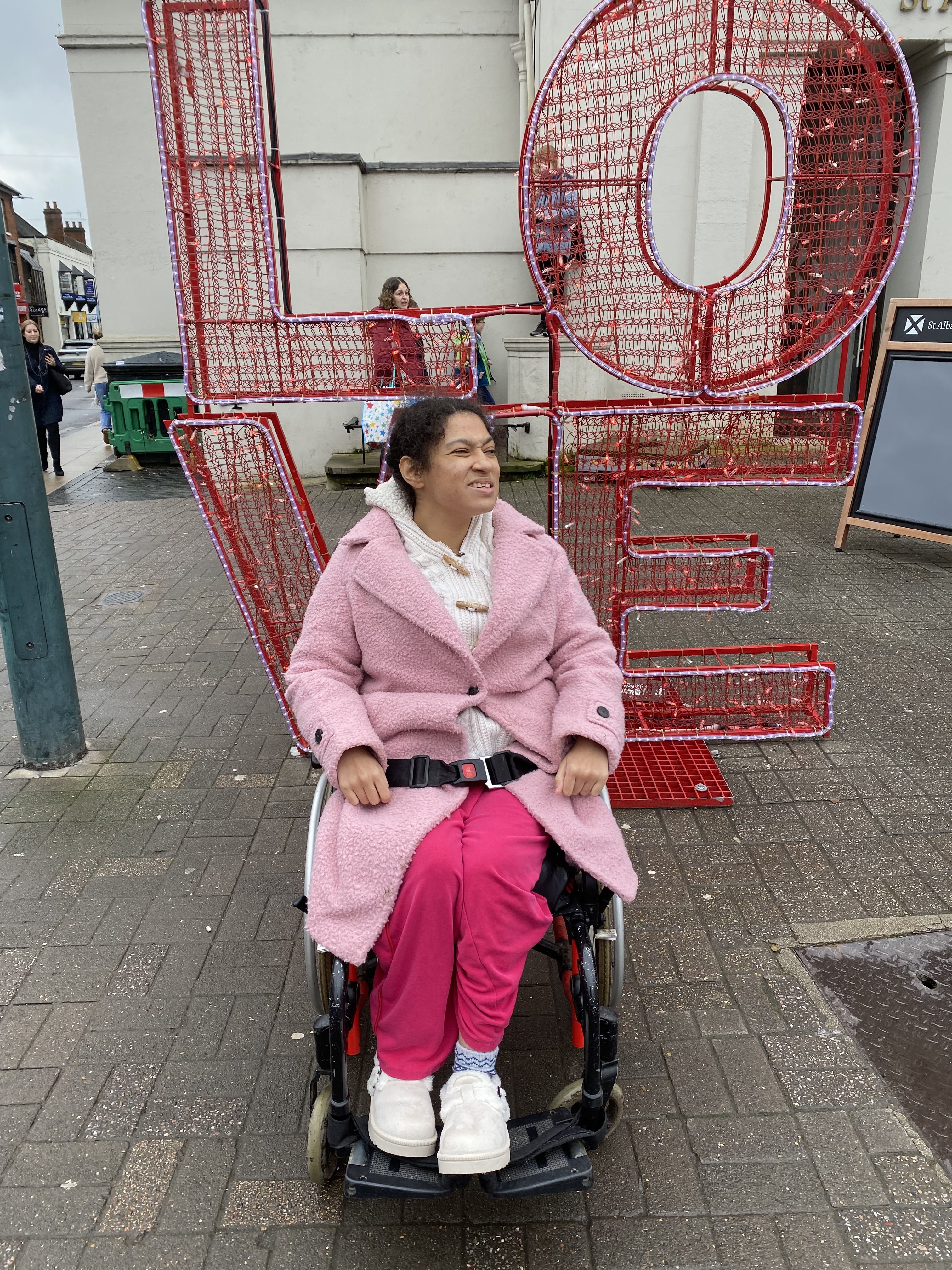 Visiting the Valentine’s Day selfie props, whilst on respite and taking photos next to and in front of them