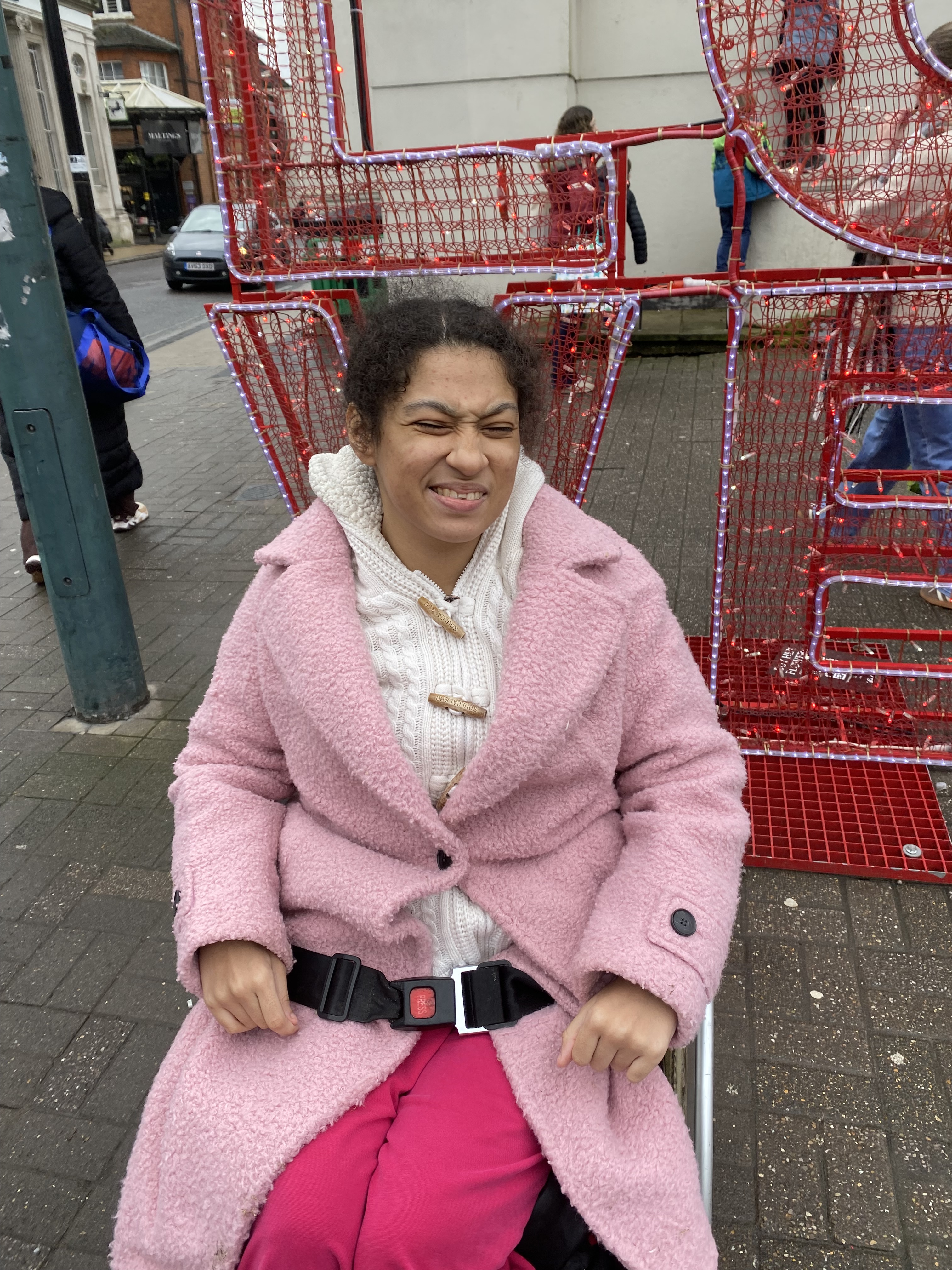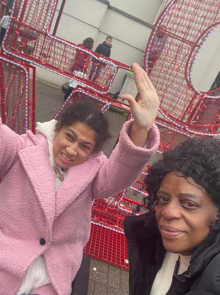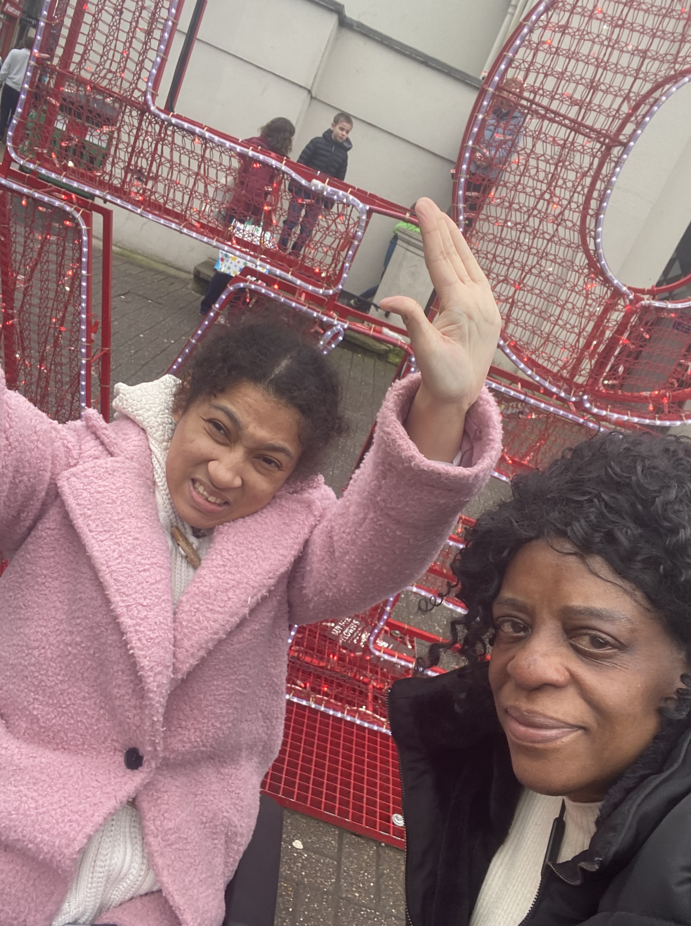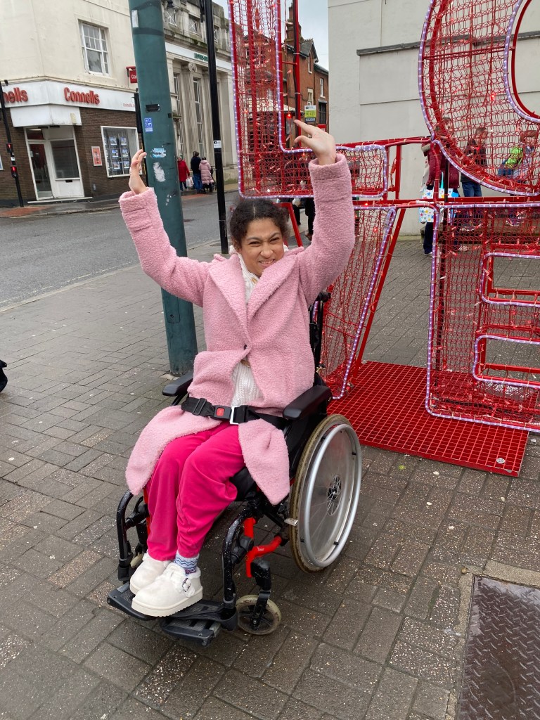 Visiting the Valentine’s Day selfie props, whilst on respite and taking photos next to and in front of them