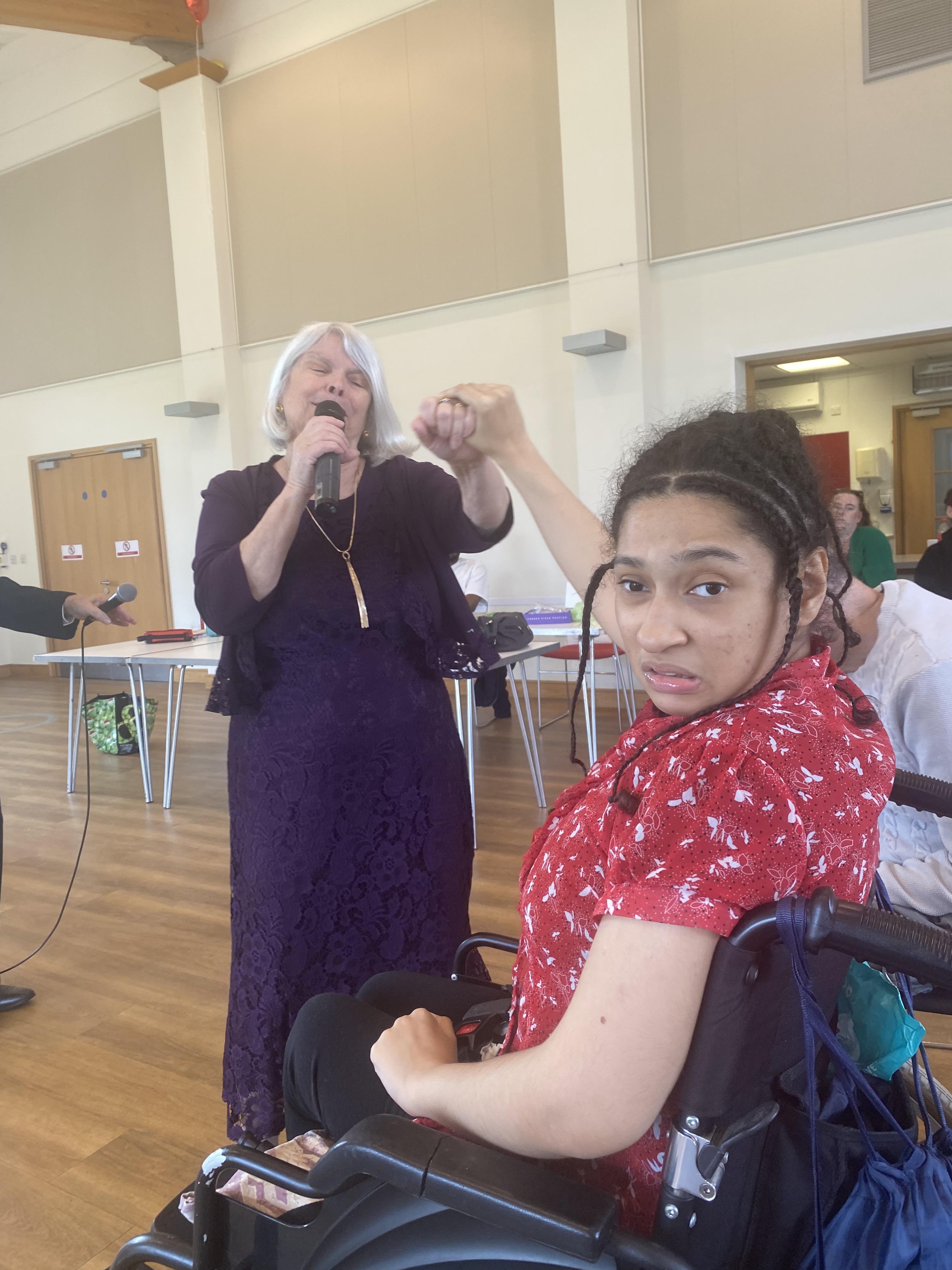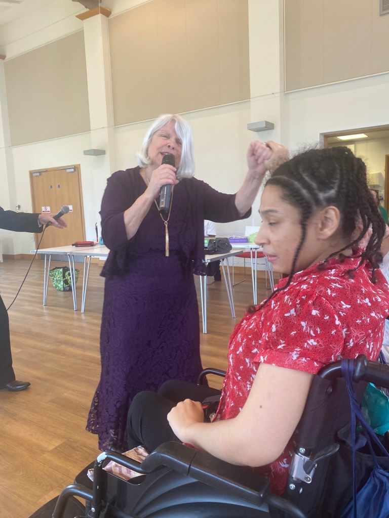 me and the performer dancing together and enjoying her act of playing Shirley Bassey