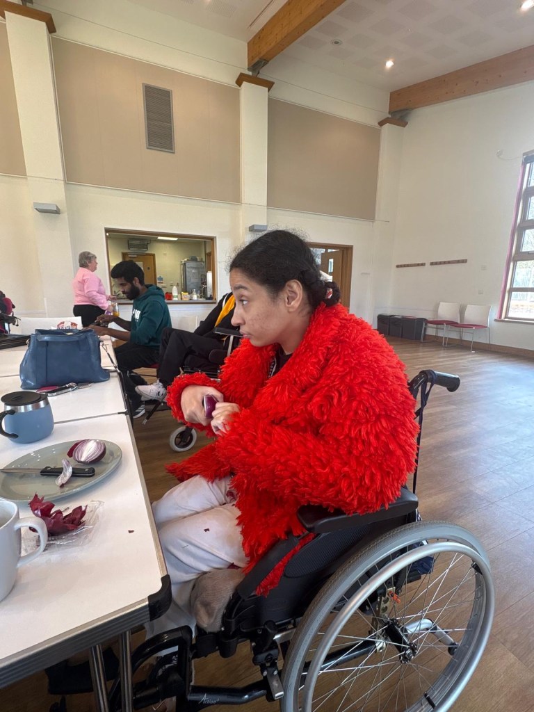 Prepairing and peeling onions for my activity group’s activity yesterday of making pizzas I was able to peel the onion independently – an independent win for me. All my PA had to do was cut the end of the onion as obviously with dystonia knives aren’t safe. This was the independent win for Monday